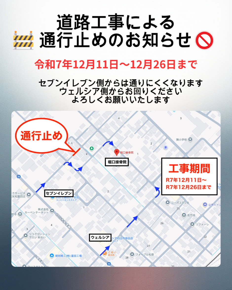 12月11日〜12月26日の期間、道路工事に伴い交通規制が実施されます。